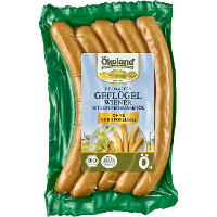 63% Geflügelfleisch* (Pute*, Huhn*), 17% Sonnenblumenöl*, Trinkwasser, Geflügelhaut*, Meersalz, Gewürze* (Knoblauch*, Koriander*, Macis*,