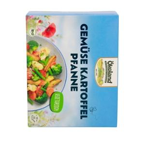 Herzhafte Gemüse-Mischung (66%) mit frittierten Kartoffeln, fein abgeschmeckt, tiefgefroren. Für die Ökoland Tiefkühlgerichte werden ausschließlich hochwertige Bio-Zutaten verwendet. Das Gemüse wird erntefrisch eingefroren, sodass Vitamine, Mineral- und Nährstoffe optimal erhalten bleiben.Durch ein modernes und schonendes Herstellungsverfahren wird das Kochen enorm erleichtert. Die Zutaten werden dabei mit den Kräutern und Gewürzen so gemischt, dass sie die Gerichte unter Zugabe von wenigen Esslöffeln Wasser oder Öl in ca. 6 - 12 Minuten servierfertig garen können.