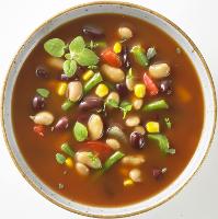 Trinkwasser, 11% Kidneybohnen*, 11% weiße Bohnen*, 8,2% grüne Bohnen*, 7,6% Paprika*, Zwiebeln*, 3,1% Mais*, Tomatenmark*, WEIZENMEHL*,