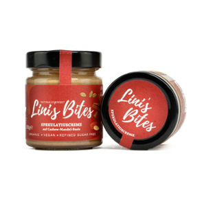 Cashews* (60 %), Kokosblütenzucker*, Mandeln*(18 %), Gewürze* (Zimt*, Muskatnuss*, Nelke*, Ingwer*, Kardamom*, weißer Pfeffer*),