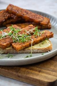 Tempeh würfeln oder in Scheiben schneiden und mit Öl in einer Pfanne goldbraun anbraten - würzen, ablöschen oder zuvor marinieren. Perfekt als Salat- oder Suppentopping, Brotbelag, in Saucen, Aufläufen, Bowls, Wraps und vielem mehr.