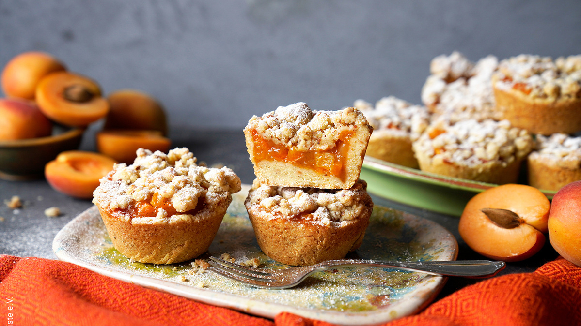 Die Aprikosen-Küchlein ca. 30 - 35 Minuten backen, bis die Streusel goldbraun werden.