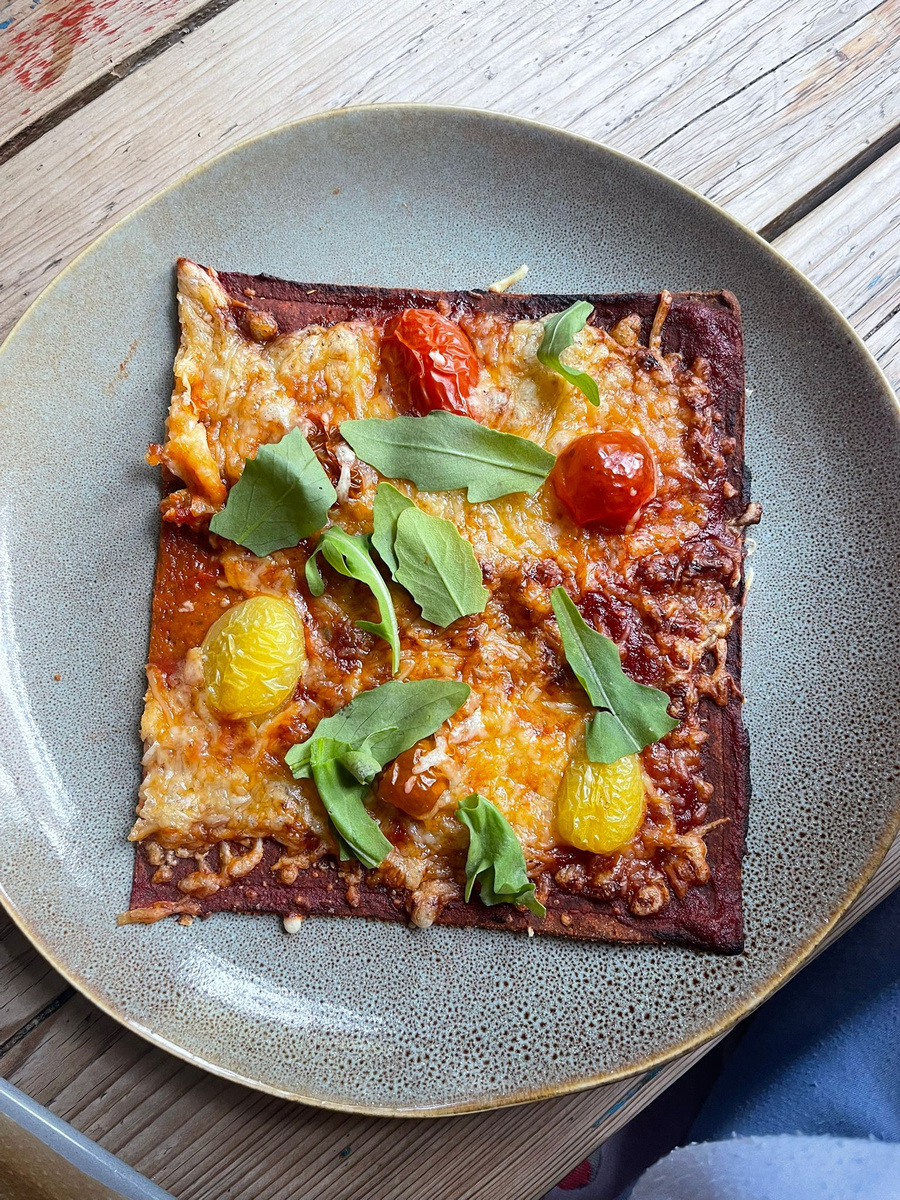Rezeptbild für Tomaten-Pinsa mit Rucola und Burrata