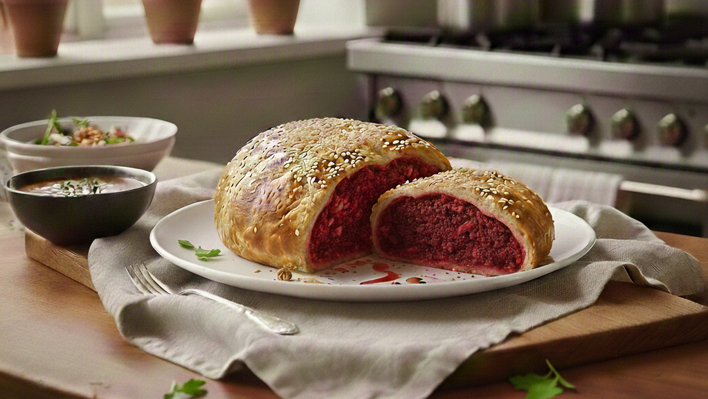 Den Wellington ca. 25-30 Minuten backen, bis er goldbraun ist. Heiß servieren, ideal mit veganer Bratensoße, Champignon-Soße, Kartoffelklößen oder Püree und geschmortem Rosenkohl oder Rotkohl.