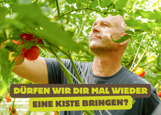 Deshalb würden wir dir gerne mal wieder eine Kiste mit unseren leckeren, frischen Bio-Produkten nach Hause bringen.
